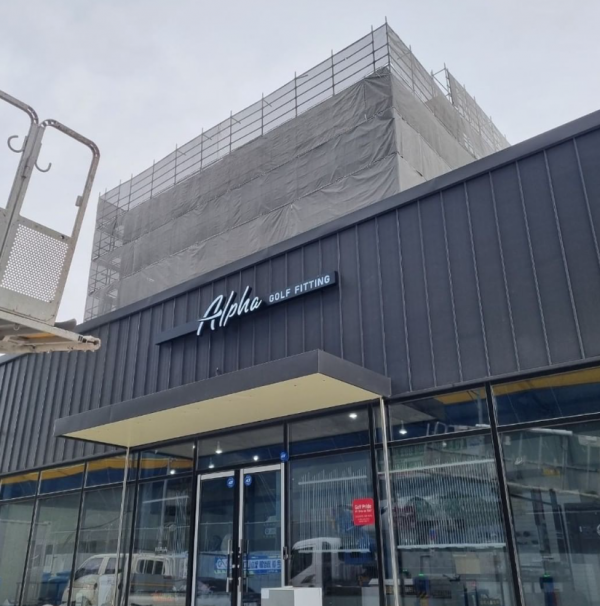 알파골프 갈바레이져 조명용간판 + 측면 비조명사인탑 시공